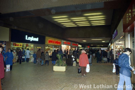 This photograph shows the inside of the Almondvale Shopping Centre shortly after it opened. It has since gone under numerous refurbishments and upgrades, and is now a million miles away from how it looks here.